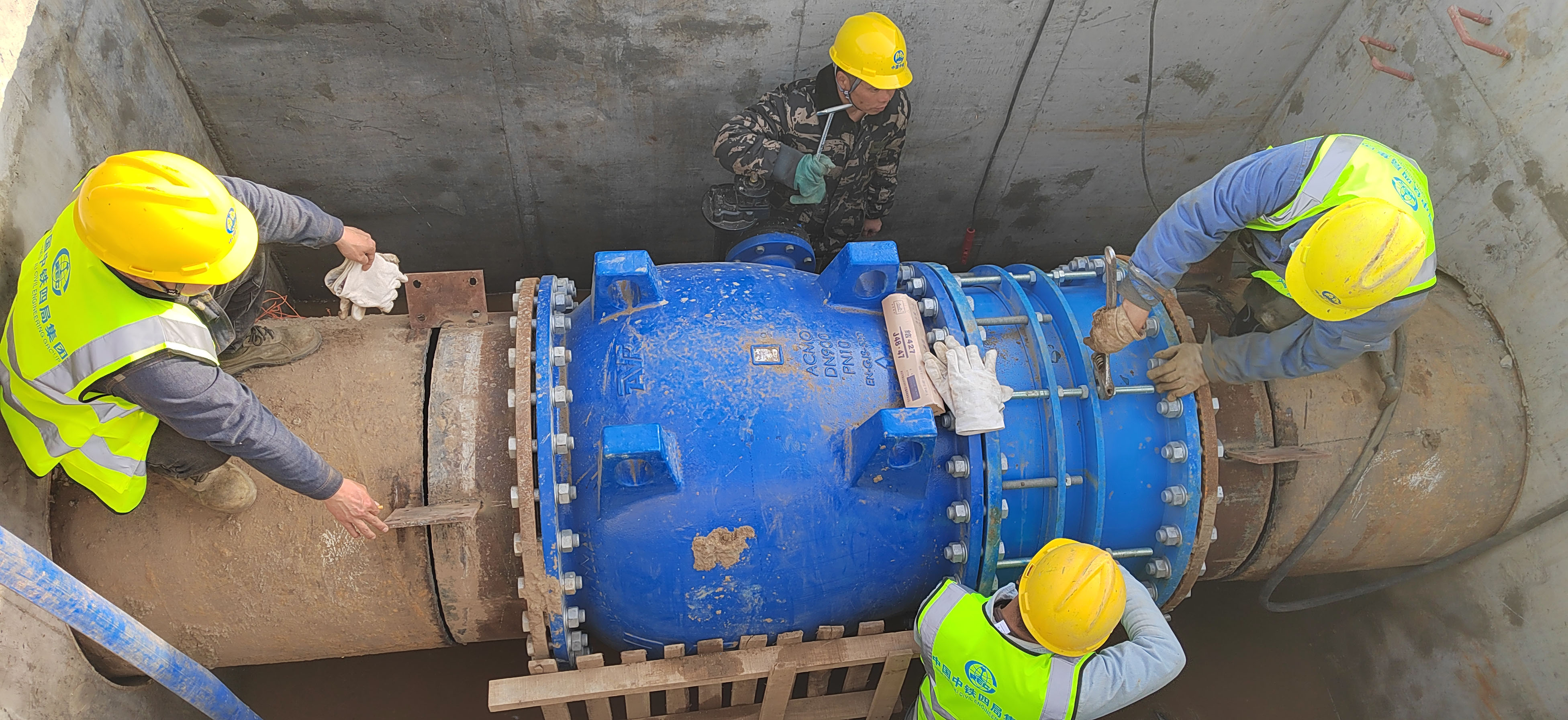 本次驳接施工为第一自来水厂取水头部改造,目前已经完成一台水泵和配套的阀门、伸缩节改造。本次驳接的DN900管径,是整个原厂管道改造工程中管径最大、安装深度最深、焊接和吊装难度最大、安全风险最高的一次驳接。为做好本次驳接工作,项目部提前筹划,总指挥部对分布在10公里施工范围内的4个工点统筹指挥,为了确保安全可控,准备了蛙人下水作业,有力地推进了施工有序进行。(武震 谭小兵)