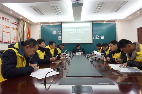 1月23日下午,在蒙城供电公司应急指挥中心,开展“2019年迎峰度冬重要用户保供电应急演练”工作。该公司分管负责人担任指挥长,相关部门和观摩人员共12人,参加了本次演练。