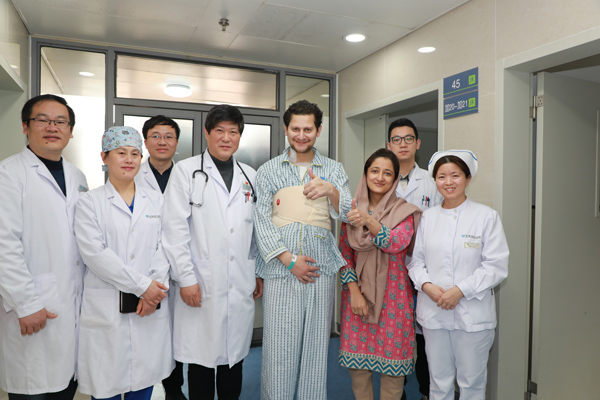 来自巴基斯坦的SHAN TANVEER-UL-HASSAN(简称Sam)在3年前,因成绩优异,获得中国科学技术大学的全额奖学金,在肥攻读化学博士学位。今年是他留学中国的最后一年。2017年底,Sam出现胸痛不适,呈间歇性疼痛,疼痛感放射至颈部及左臂。尤其是在饭后和上楼梯时表现的更加明显。此后,这种症状反复发作,稍微快步10多米,胸痛便会加重伴头黑矇,眼发花,几次险些晕厥。2019年2月,Sam胸痛胸闷症状继续加重,心悸,呼吸急促,夜晚睡觉需侧卧方能入睡。回国探亲时,Sam在巴基斯坦白沙瓦市医院就诊时发现患有肥厚性梗阻性心肌病,当地医生推荐Sam前往中国或美国进行手术治疗。