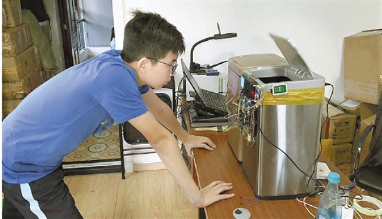 这个大学宿舍里的垃圾桶有些与众不同,其底部有4个轱辘,用遥控车的底盘改造。只要按一下遥控,垃圾桶就“随叫随到”了。