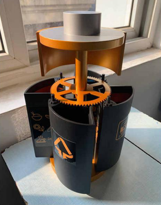 这款智能分类垃圾桶“四合一”,可以旋转,外形好像一个“大电池”。当有人走近准备投放时,垃圾桶会自动感应,并以花瓣的形式旋转出下方四个独立的垃圾桶,进行“四分类”,供人们进行投放。