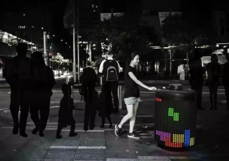 这种智能垃圾桶周身的显示屏内覆盖着2700余个LED冷光灯,内置了触觉感应器,当向桶内扔垃圾时,感应器能够自动识别你扔的垃圾,并将其虚拟成各种LED图案,还可以玩俄罗斯方块。