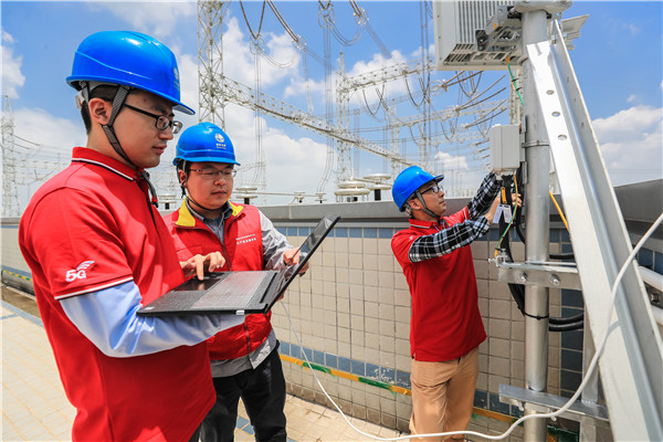 6月14日,±1100千伏特高压古泉换流站内,国网安徽信通公司专责吴非与安徽电信、华为公司技术人员一起打开连接5G终端CPE设备的笔记本电脑,对基站上下行速率进行测试。测试结果显示,古泉站以基站为中心的十几个典型位置无线传输通道下行速率峰值达到800Mb/s,平均超过570Mb/s,通道上行速率峰值达到160Mb/s,平均超过100Mb/s,均满足设计要求,±1100千伏特高压古泉换流站5G网络建设工程取得圆满成功。