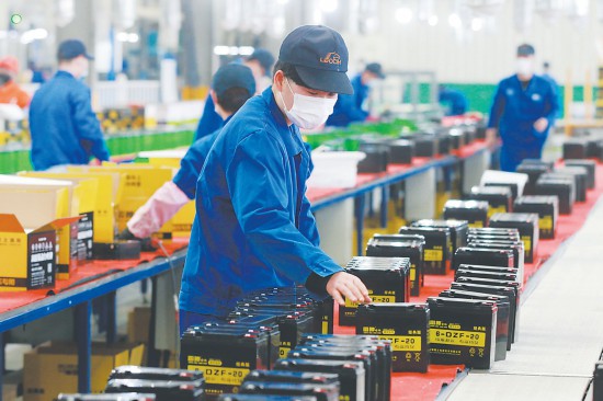 日前,工人在濉溪经济开发区安徽理士电池技术有限公司生产车间加工生产铅酸蓄电池。目前,该公司全面复工复产,赶制国内外产品订单。通讯员 万善朝 摄
