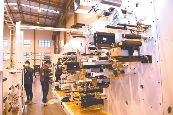 日前,在黄山市经济开发区黄山富田精工制造有限公司,工人在调试高速口罩生产线。疫情发生后,该公司先后研发出高速防护口罩生产线、N95口罩全自动高速生产线等设备投入市场,保障防护物资生产。 记者 吴文兵 摄