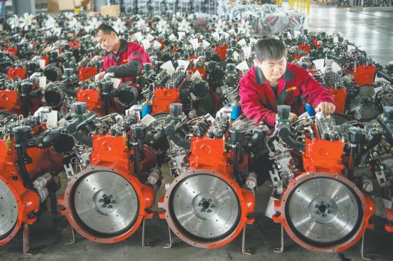 4月10日,当涂经开区徽柴集团员工正在装配出口东南亚的柴油机。连日来,该企业在抓好疫情防控的同时,开足马力生产,兑现出口订单。随着“一带一路”建设的不断推进,中国非道路用柴油机行业的领跑者——徽柴集团已成为东南亚农用柴油机市场最大的供应商。记者 李博 特约摄影 王文生 摄