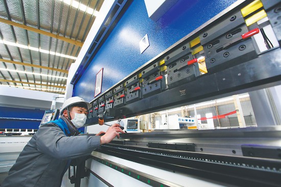 日前,马鞍山市博望区安徽哈科数控机床制造有限公司职工在加工出口机床。该公司所生产的高端数控机床出口到90多个国家和地区。特约摄影 王文生