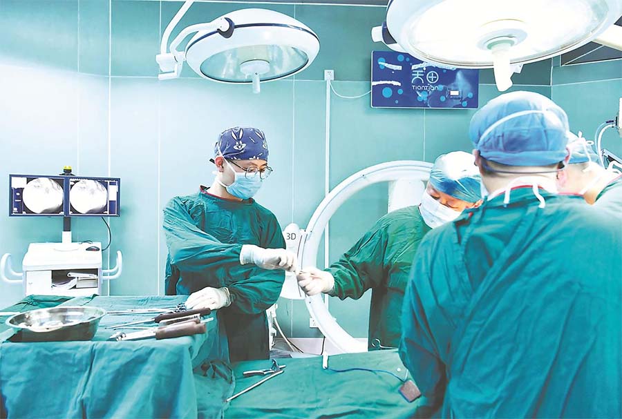 5月7日,安医大一附院手术室正在进行一台手术。男护士陈卓(左一)配合医生进行器械交接。今年2月12日,陈卓参加了安徽省第四批援鄂医疗队,和队友共同奋斗在抗疫一线。记者 程兆 摄