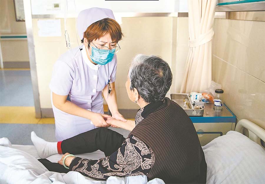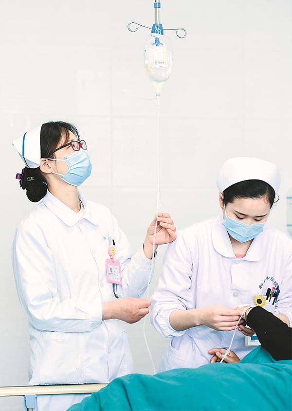 5月11日,在和县中医院,两名护士在给患者输液。在新冠疫情期间,广大医护人员始终坚守一线,为地方疫情防控发挥重要作用。 通讯员 秦祖泉 摄