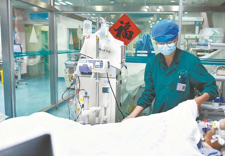 5月7日,安医大一附院EICU急诊重症监护室护士金长雨在护理患者。在援鄂抗疫的65天里,他奋战在武汉市金银潭医院ICU病区,从事危重症患者护理工作。 记者 程兆 摄