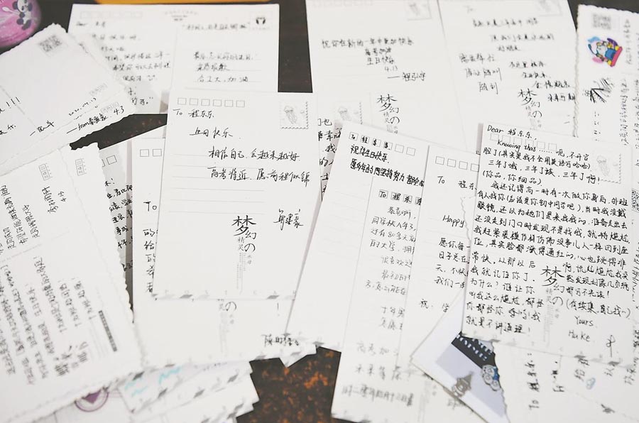 每年生日,程东东都会收到班上同学的鼓励贺卡。 (5月28日摄)