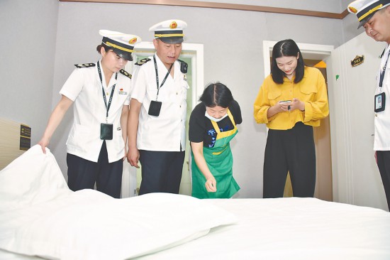 7月2日,阜南县卫生健康执法人员对高考生入住的住宿场所进行监督检查,确保考生住宿卫生安全。通讯员 吕乃明 摄