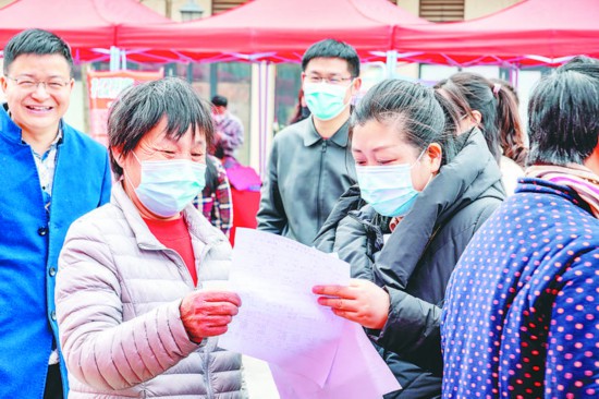 3月3日,瑶海区龙岗开发区油坊社区在油坊新城二期小区广场举办招聘会,岗位涵盖制造业、服务业、旅游业等多个领域,能满足各个年龄段的就业需求。刘娜 杨旭蕾 记者 宋炎骏 摄