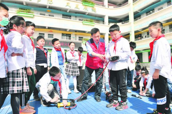 在全国防灾减灾日到来之际,省地震局和凤凰城小学共同开展“防灾减灾”主题活动。通过开展逃生演练、介绍消防器材讲解,展板展示等方式,普及防灾减灾知识。 季云冈 记者 郭如琦 摄