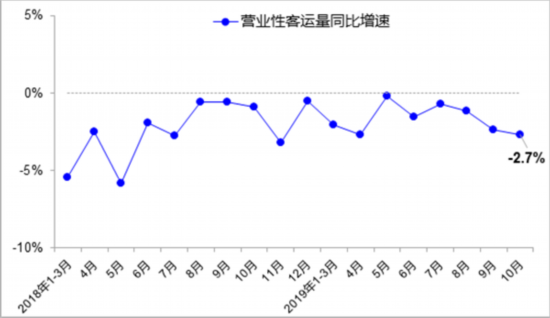 10月,完成营业性客运量15.6亿人,同比下降2.7%,其中公路营业性客运量下降4.9%、水路客运量下降2.4%。