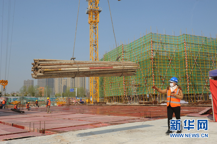 连日来,中建五局安徽公司皖北分公司阜阳市颍泉区沐春苑安置区保障住房建设项目按照复工要求,积极组织施工人员在做好疫情防控的同时,加紧进入主体结构施工阶段,钢筋捆扎、模板支撑、混泥土浇筑等施工作业,工地呈现有序复工的繁忙景象。据了解,该建设项目系民生工程,总建筑面积为24.75万平方米,是阜阳市体量最大的装配式建筑项目之一,建成后将惠及1300余户安置户居住。新华网发(王彪 摄)